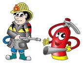 Cute fire extinguisher clipart: Fireman and fire extinguisher