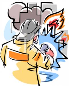 Kitchen fire clipart: Fireman Putting Out a Fire
