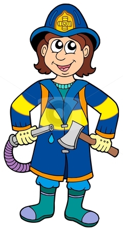 Girl firefighter cartoon: Fireman with axe