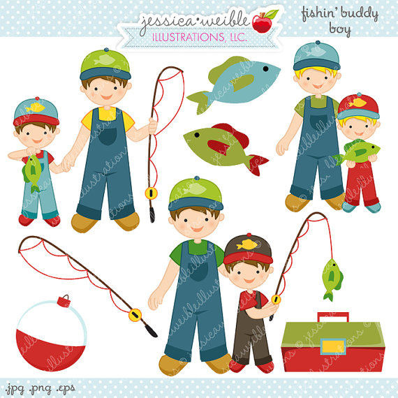 Buddy clipart: Fishin Buddy Boy Cute Digital