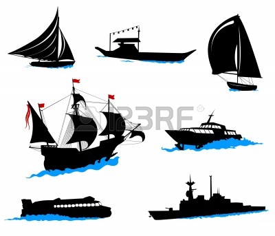 Commercial fishing boat drawing: fishing vessel : Silhouettes