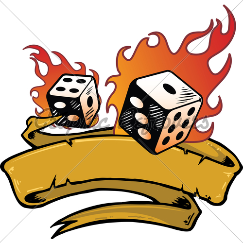 Rolling dice flames: Flaming Dice Banner Vector