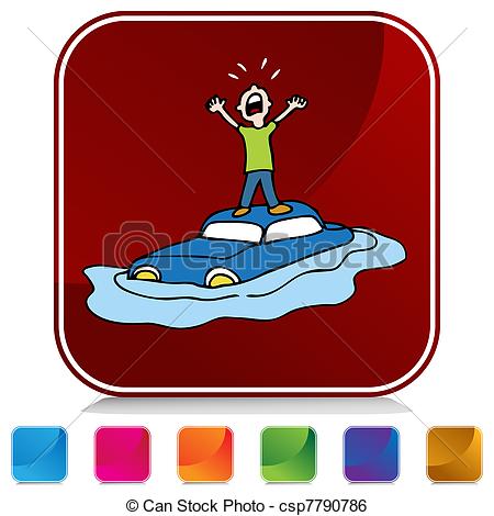 Flood clipart: Flooded Car Button Set -