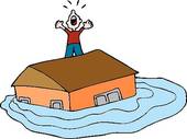 Flood clipart: flooded house; flooded road