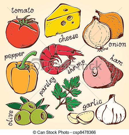 Ingredient clipart: Food set pizza ingredients on