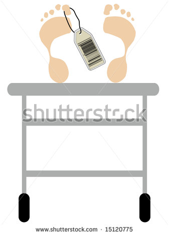 Autopsy clipart: foot prints with toe tag on