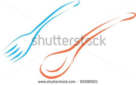 Spoon and fork drawing: fork and spoon sketch - stock