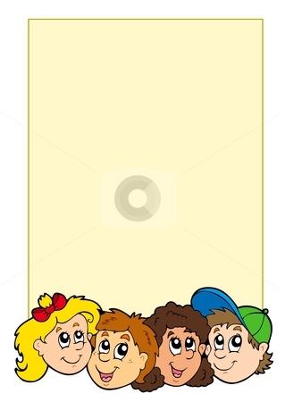 Kids picture frame clip art: Frame with various kids faces