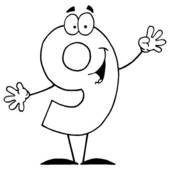 Nine clipart black and white: Friendly Outlined Number 9