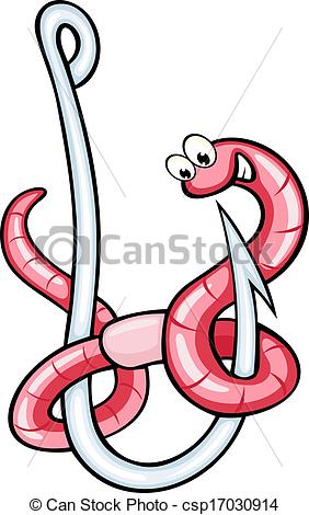 Cute fishing hook clipart: Funny warm on fishing hook in