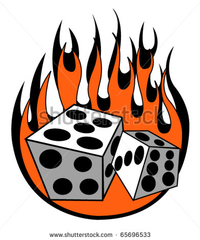 Rolling dice flames: gambling dice being rolled