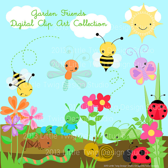 Garden clipart: Garden Bug Friends Digital