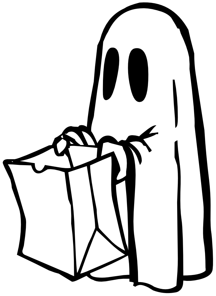 Ghost clipart black and white: Ghost with bag (black and