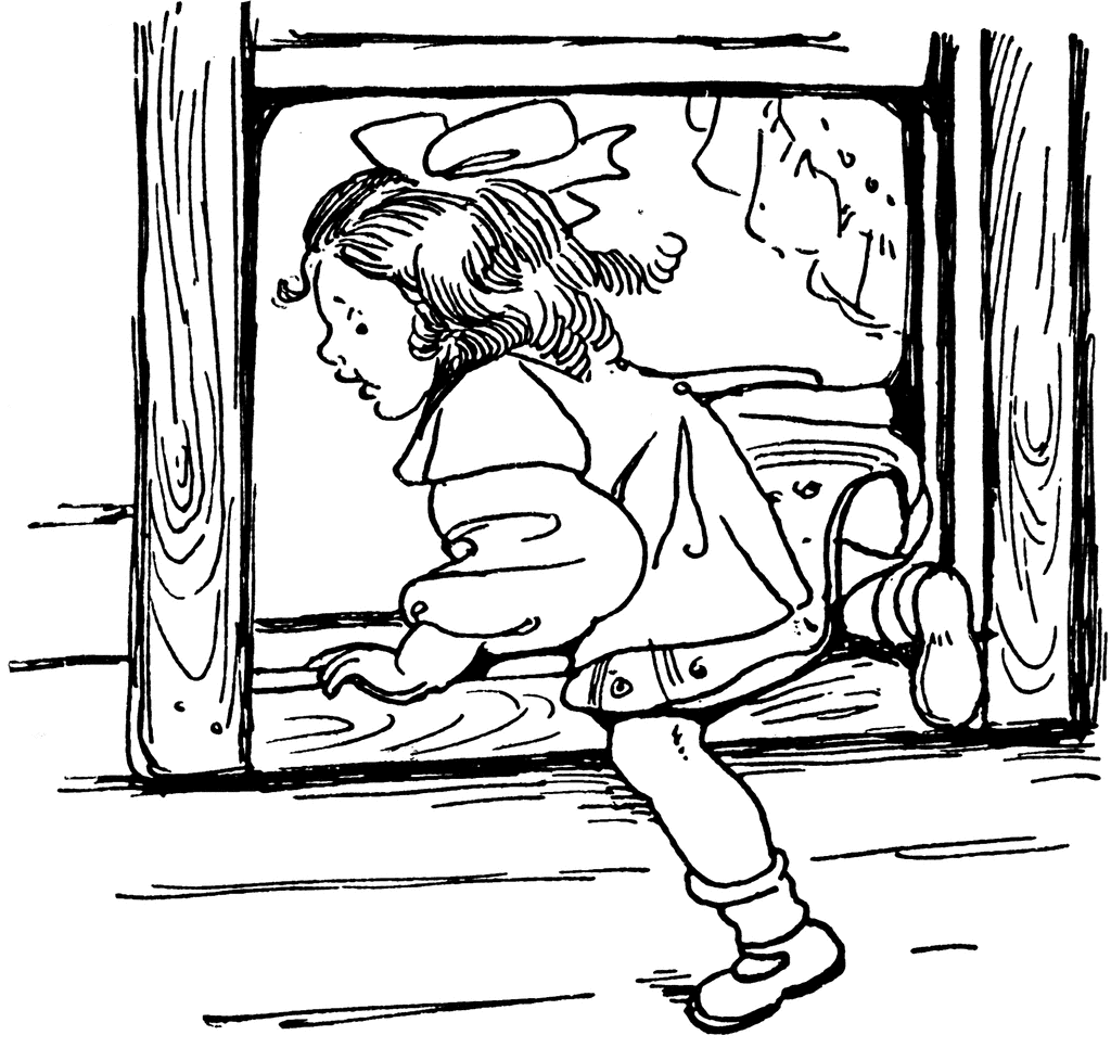Window clipart: Girl Leaving Through Window