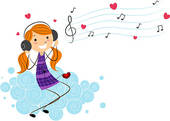 Kids listening to music clipart: Girl Listening to Music