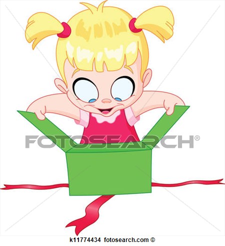 Opening clipart: Girl open gift