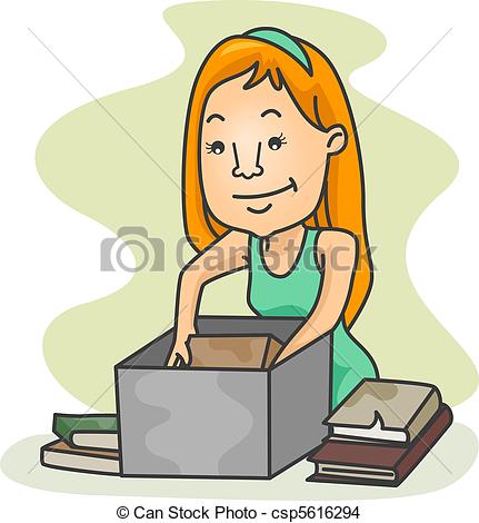 Packing clipart: Girl Packing Old Books -