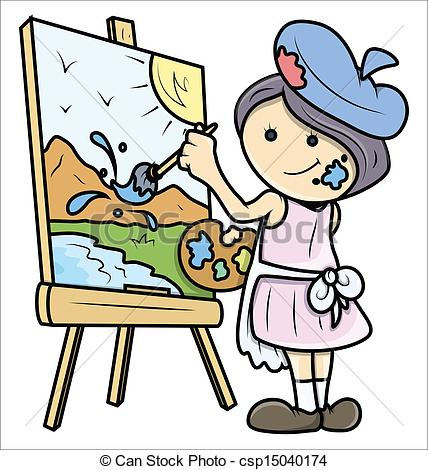 Painting clipart: Girl Painting a Landscape on