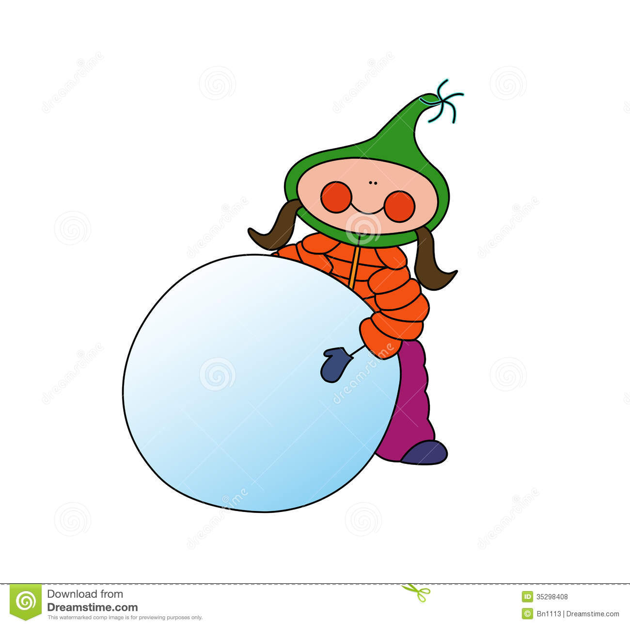Snowball clipart: Girl rolling snowball Royalty