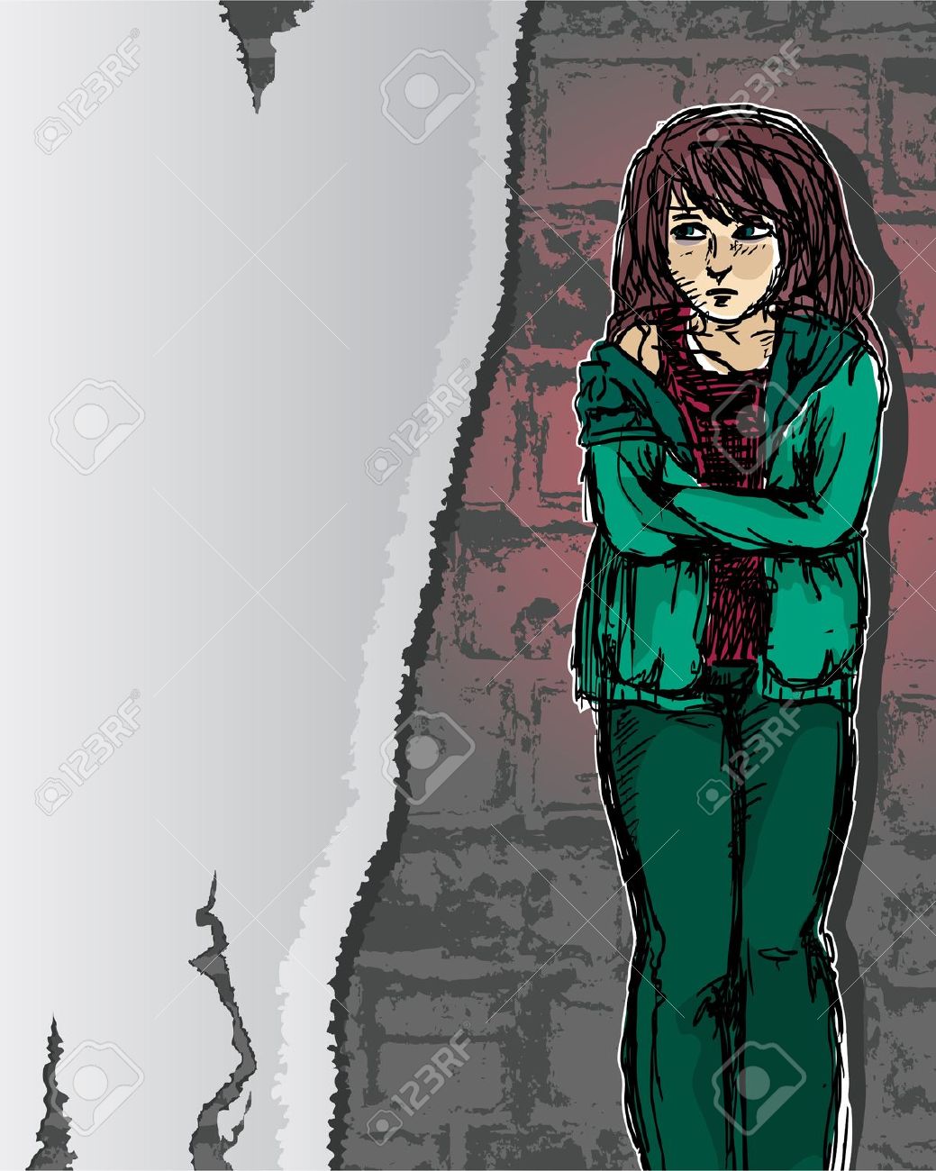 Rape clipart: Girl standing against a brick