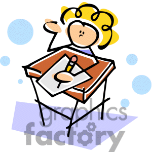 Boy and girl writing clipart: girl writing at her desk