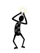 Idea lightbulb above head: Glyph Holding Lightbulb Over