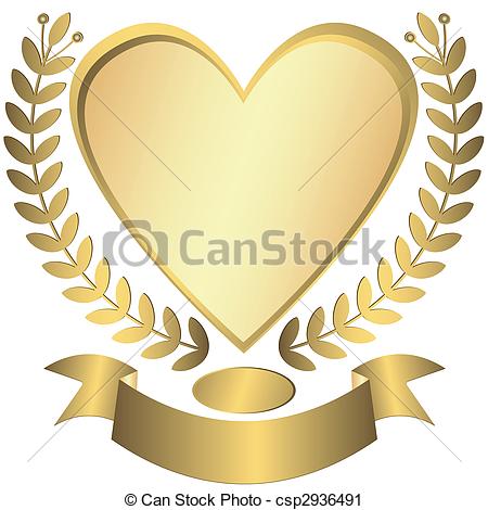 Award clipart: Gold award-heart with ribbon