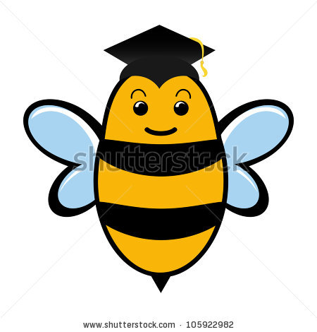 Spelling center clipart: Graduating bee wearing a