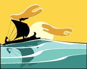 Evening clipart: Greek Warship in the evening.