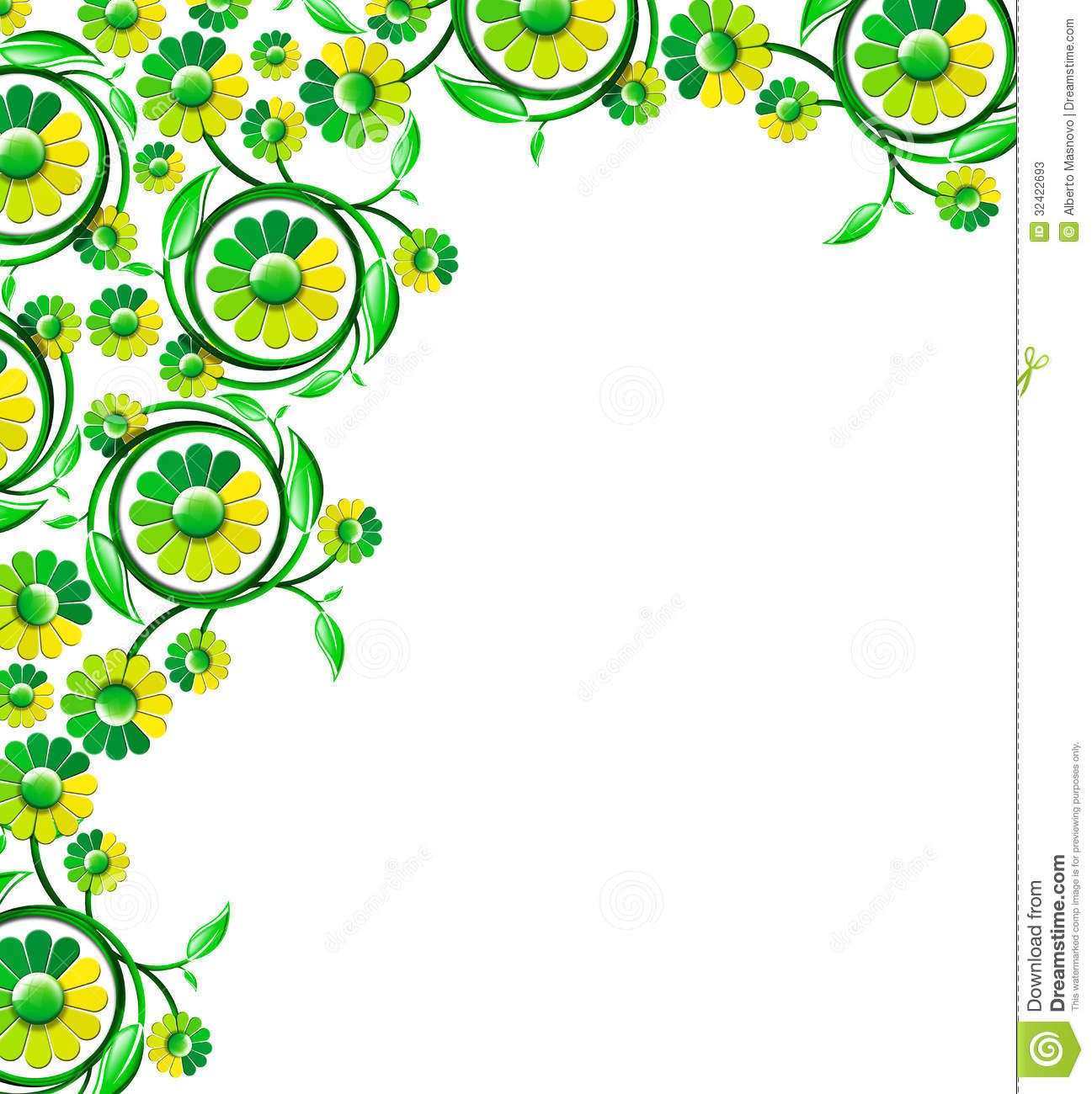 Green leaves white background: Green Floral Border