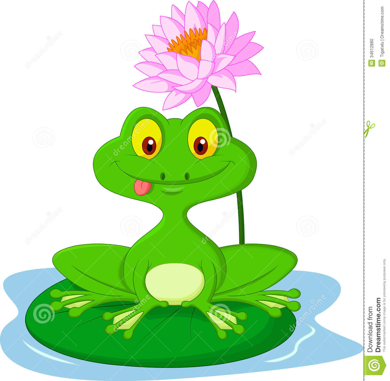 Frog on lily pad clipart: Green frog cartoon sitting on