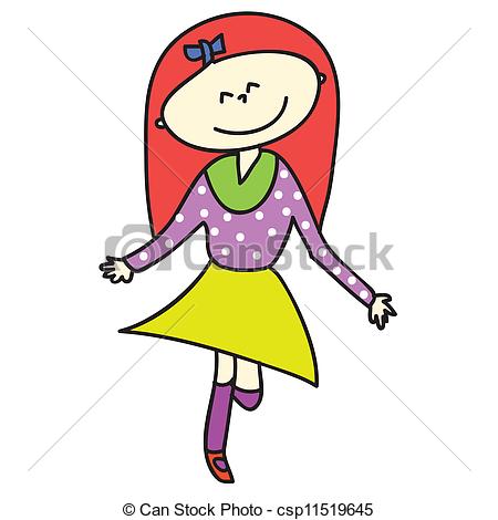 Happy girl clipart: hand-drawn cartoon happy girl