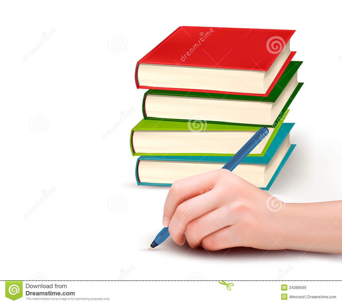 Stack of paper vector: Hand with pen writing on paper