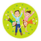 Open window at night clipart: Happy family in open window