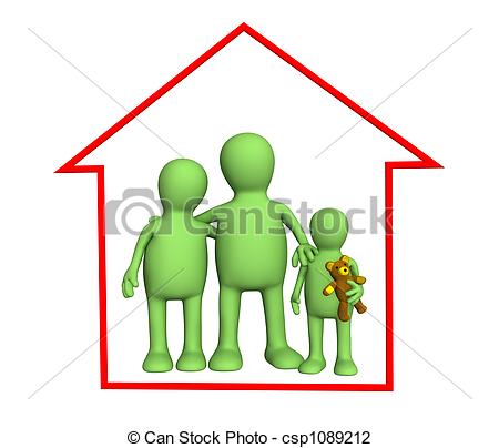Happy family house clipart: Happy family in the house -