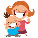 Mama clipart: Happy mom and son smiling