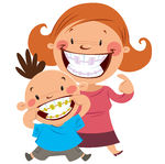 Brace clipart: Happy mom and son with braces
