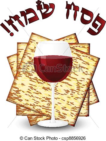 Passover clipart: Happy passover - matza & wine