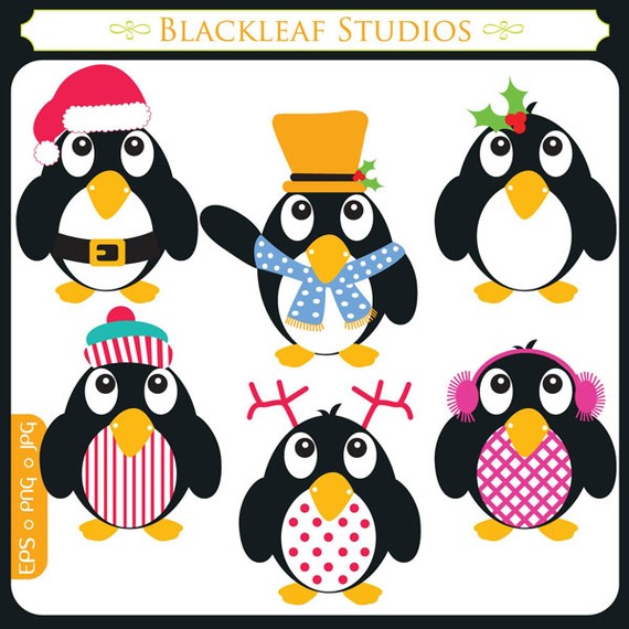 Winter penguin clipart: Happy Penguins ORIGINAL