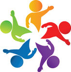 Group of happy people clipart: Happy people around star logo