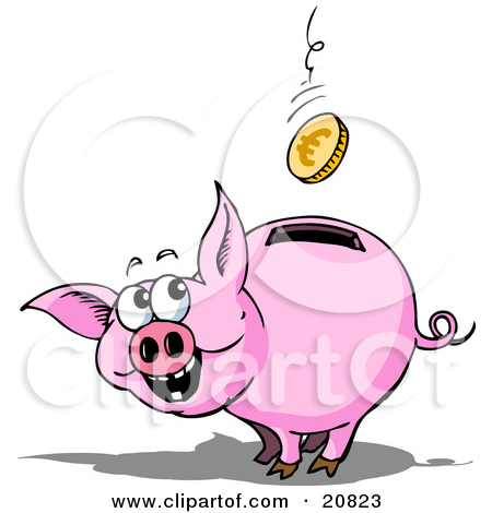 Cute piggy bank clipart: Happy Piggy Bank Watching A