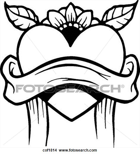 Foreground clipart: heart with a text banner in the foreground and flowers in the background