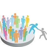 Group of business people clipart: Helper helps person join