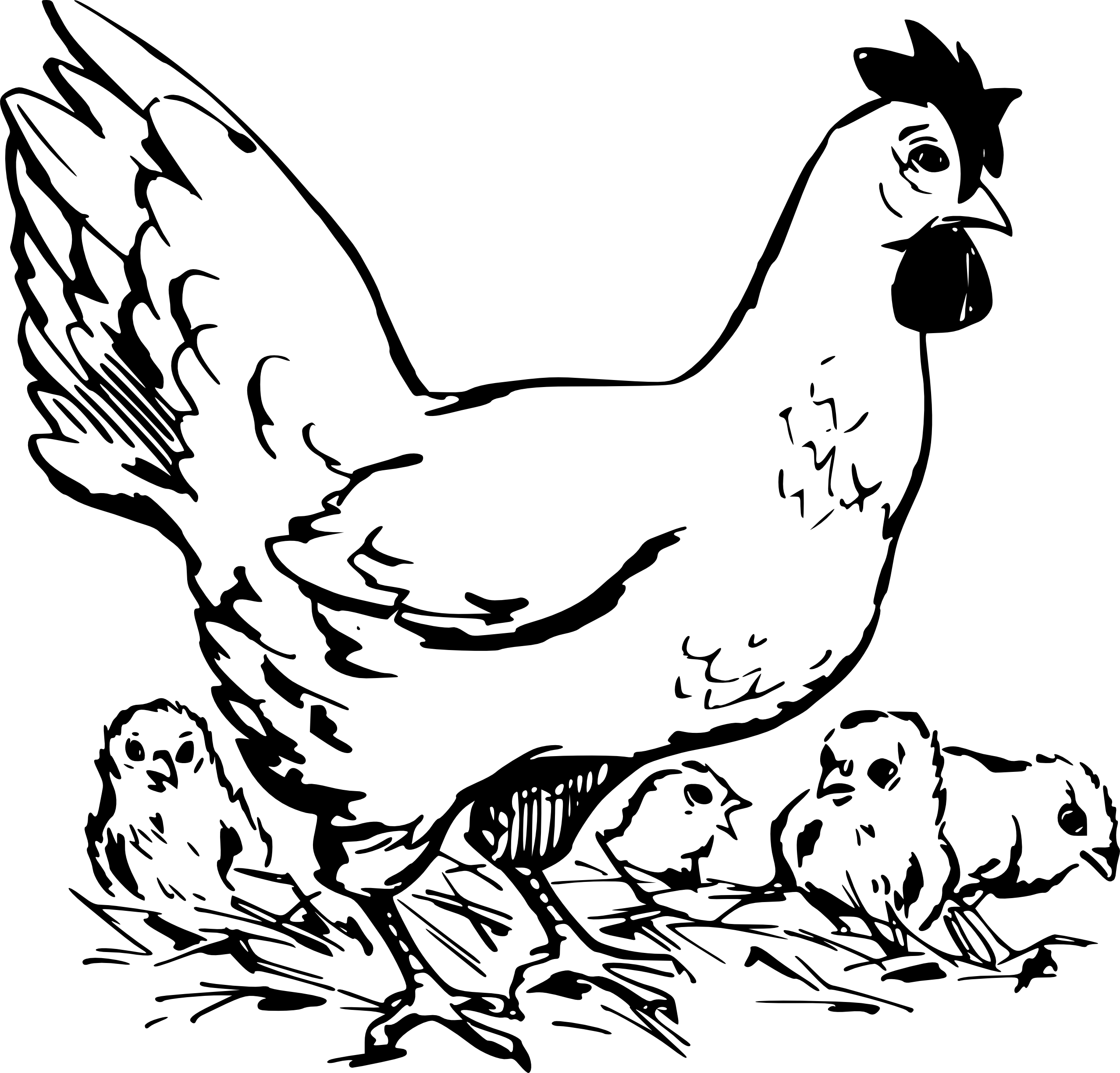 Sterilization clipart: hen and chickens black