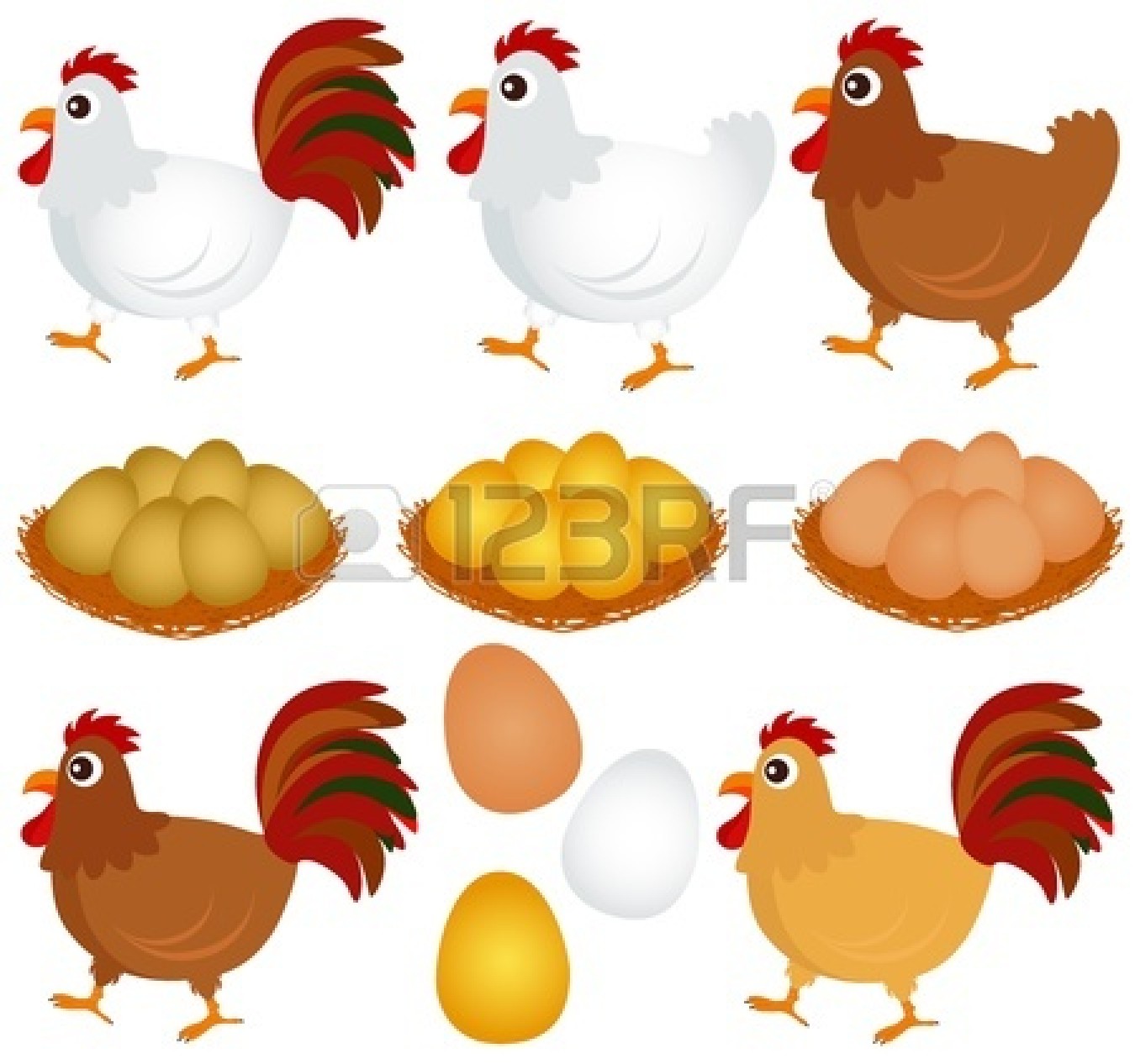 Hen on nest clipart: Hen, Rooster isolated on
