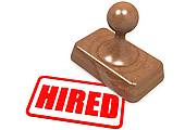 Hiring clipart: Hired word on wooden stamp