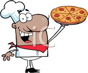 Pizza pie cartoon: Holding Up a Pizza Pie
