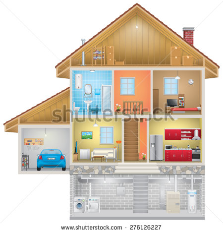 Basement clipart: House Interior on White