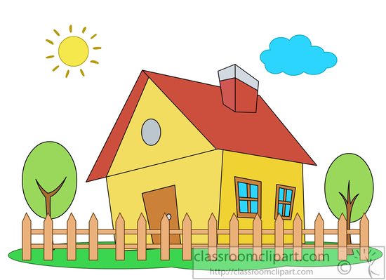 Home clipart: house-with-picket-fence-trees-