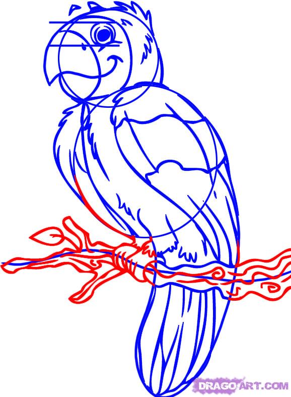 Cute parrot drawing: how to draw a cartoon parrot